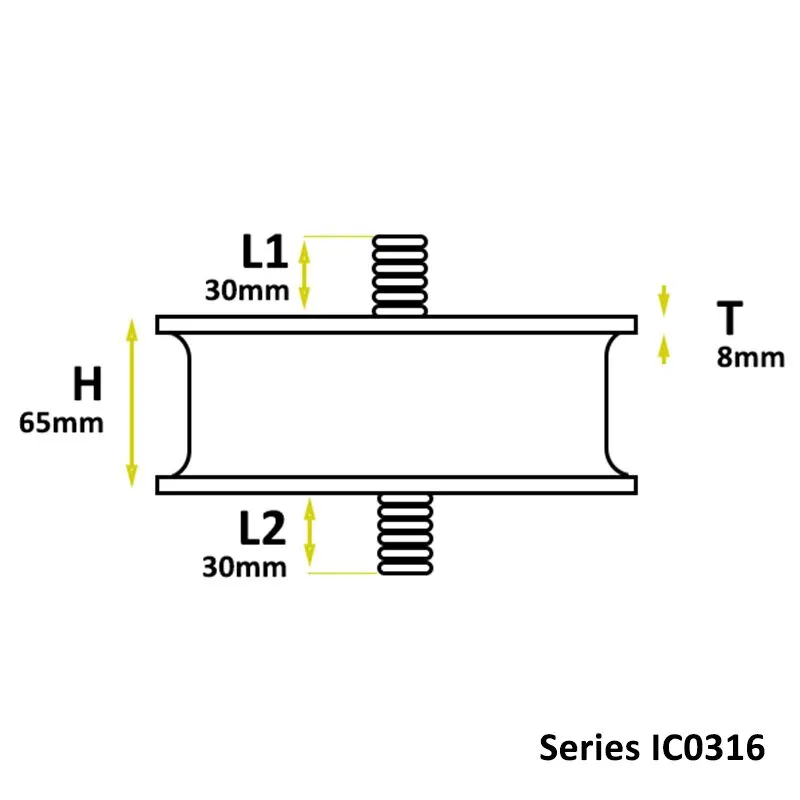 Round Rubber Buffer with 2 x 30mm male studs.
